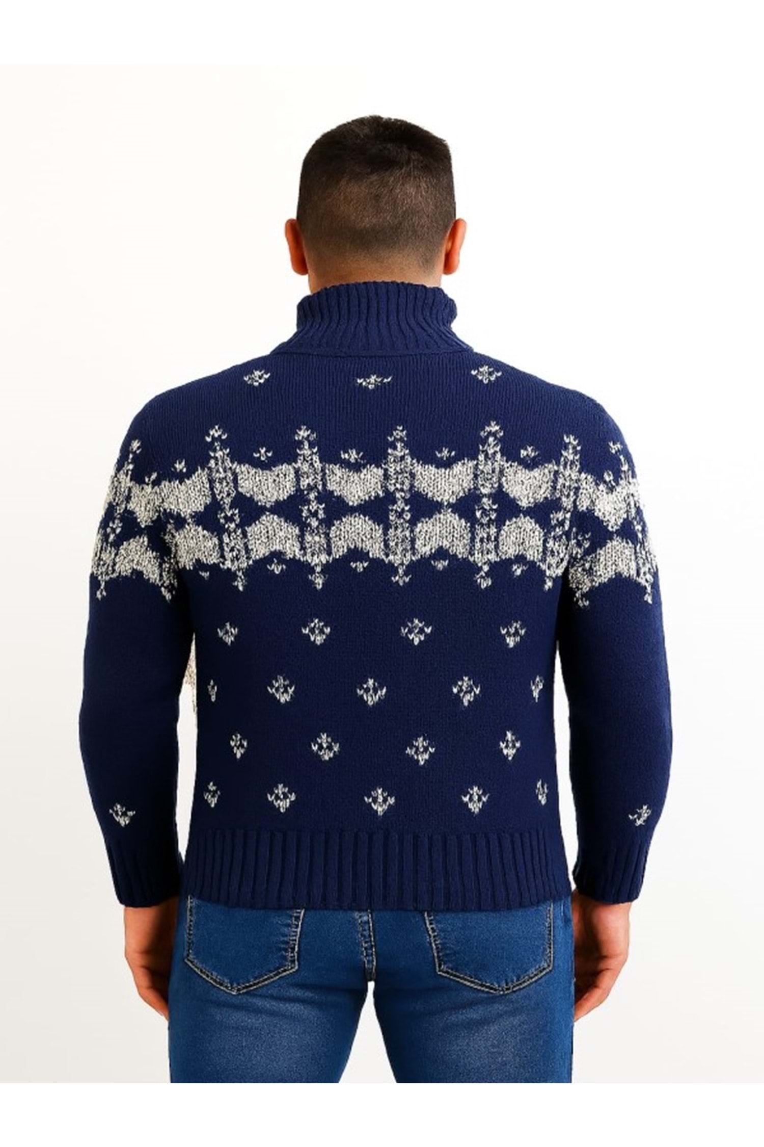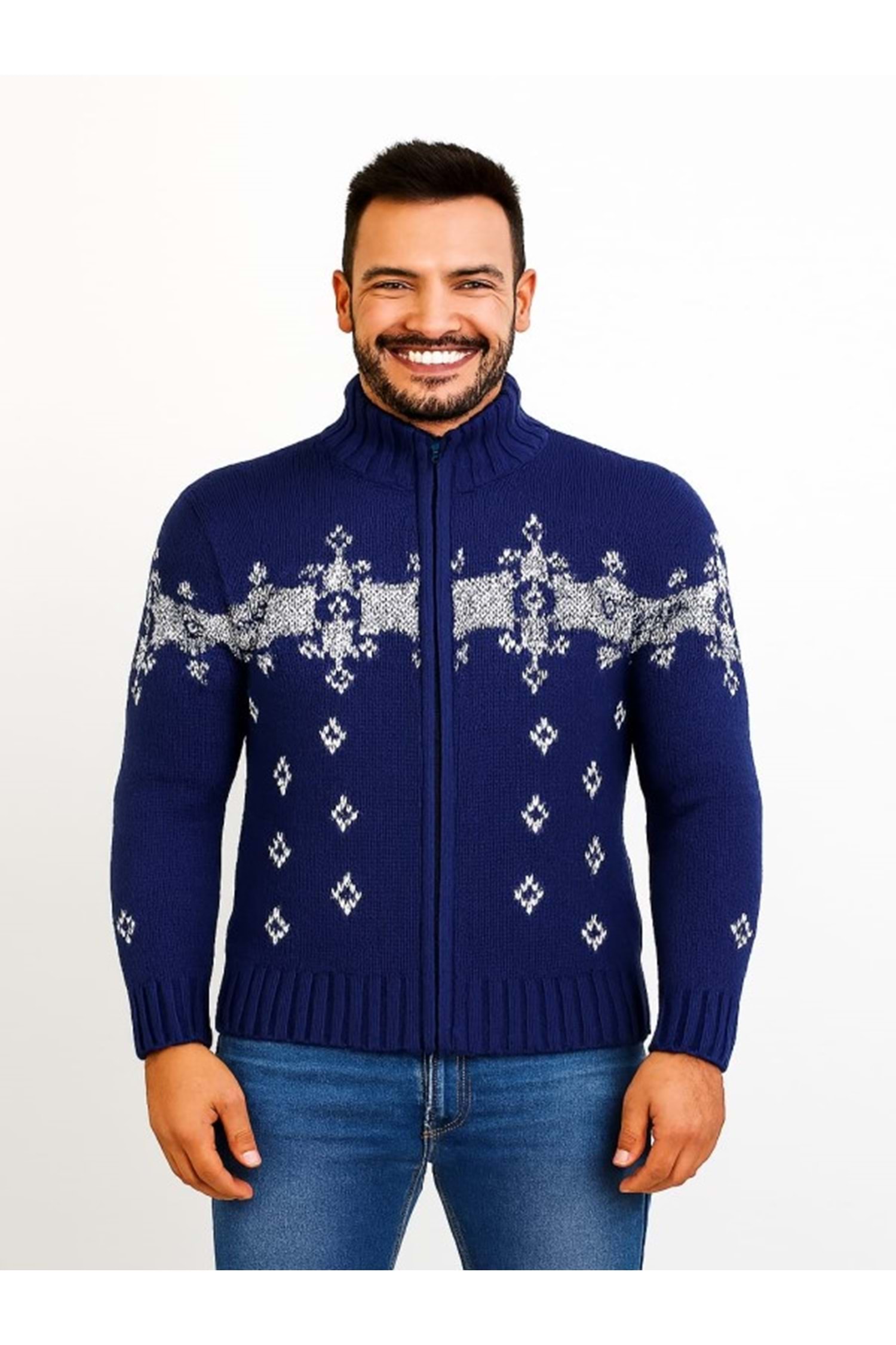 Tarz Cool T00575 Erkek Desenli Triko Hırka - Mavi - ST00575-Mavi-S