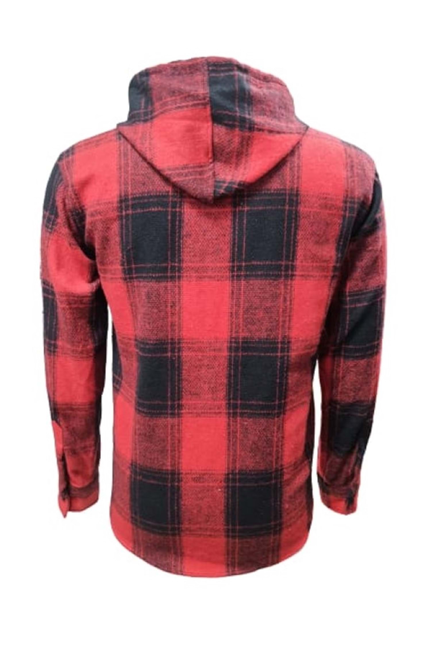Ronex R00644 Erkek Oduncu Kapüşonlu Düğmeli Ekose Büyük Kareli Gömlek - ST00644-Kırmızı-S