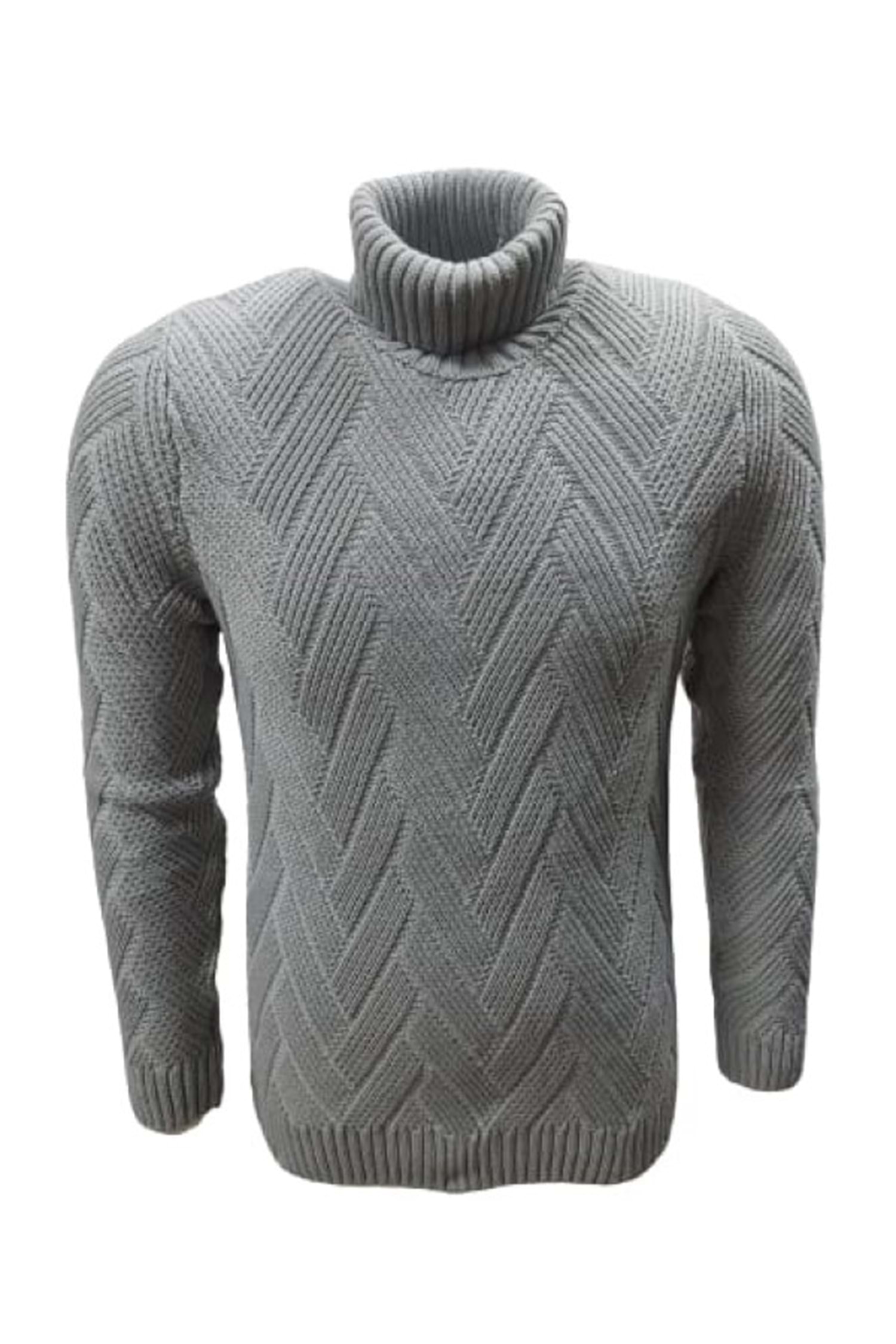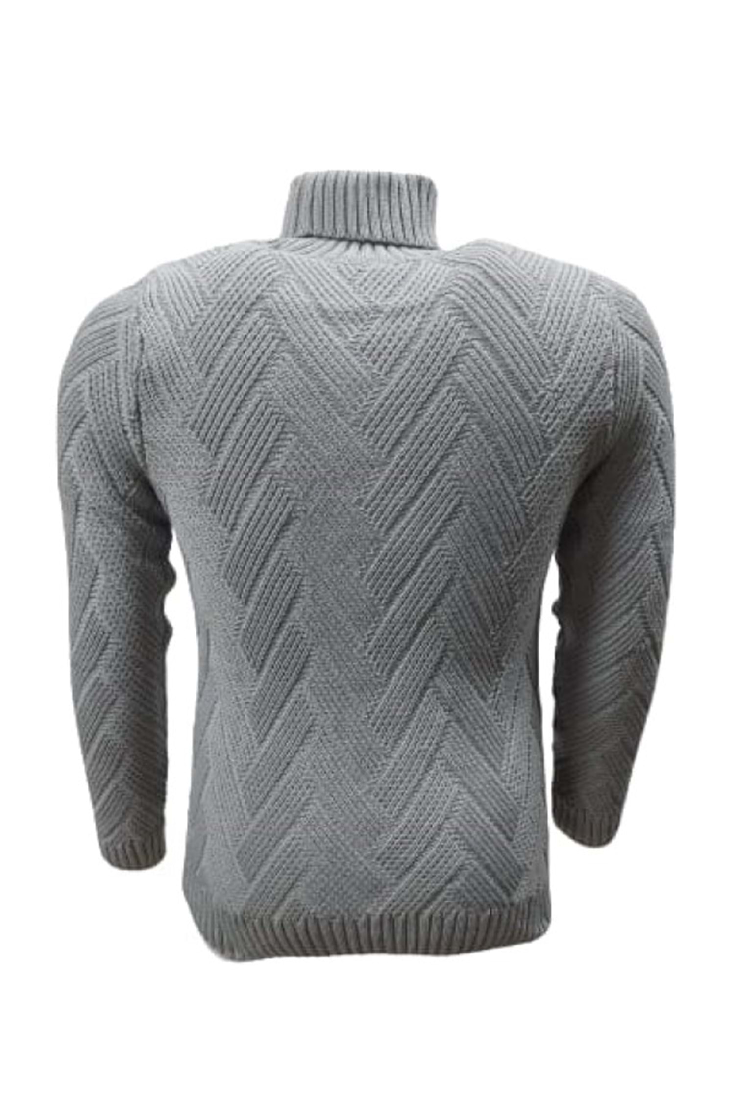 Ce-Ce C1033 Erkek Regular Fit Desenli Tam Balıkçı Boğazlı Kazak - ST01825-Gri-XL