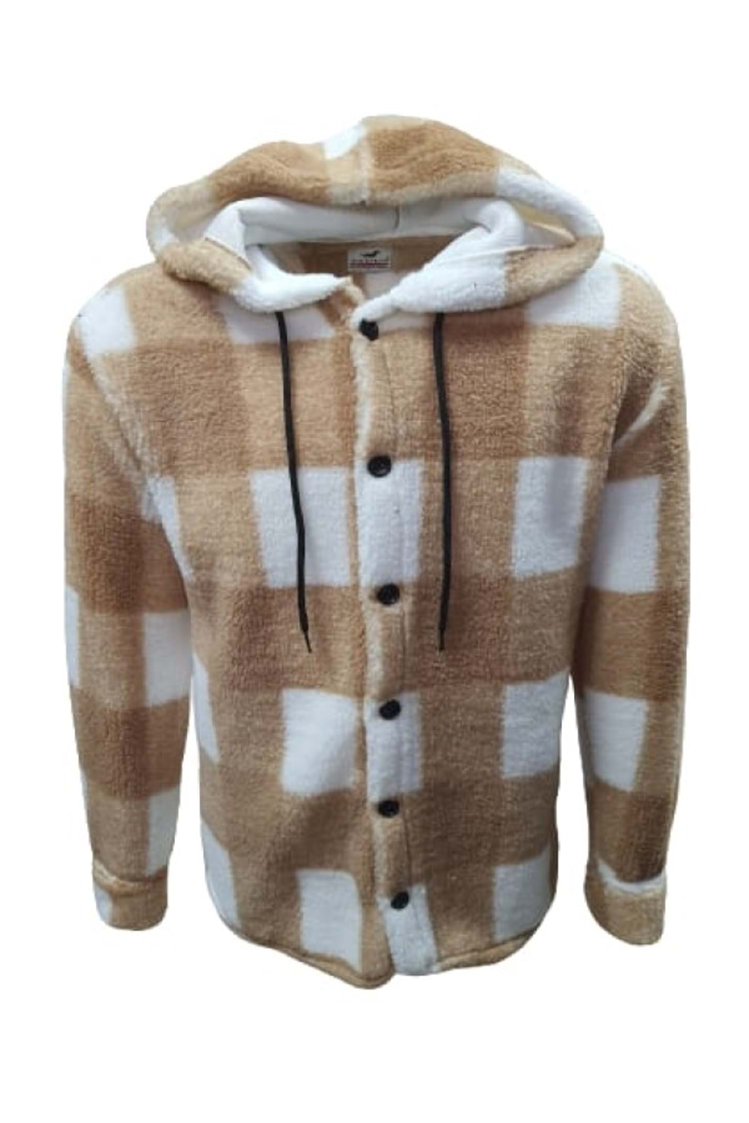 Yegua Y01092 Erkek Kareli Kapüşonlu Kuzu Peluş Hırka - Y01092 - Açık Kahverengi - ST01092-Açık Kahverengi-L