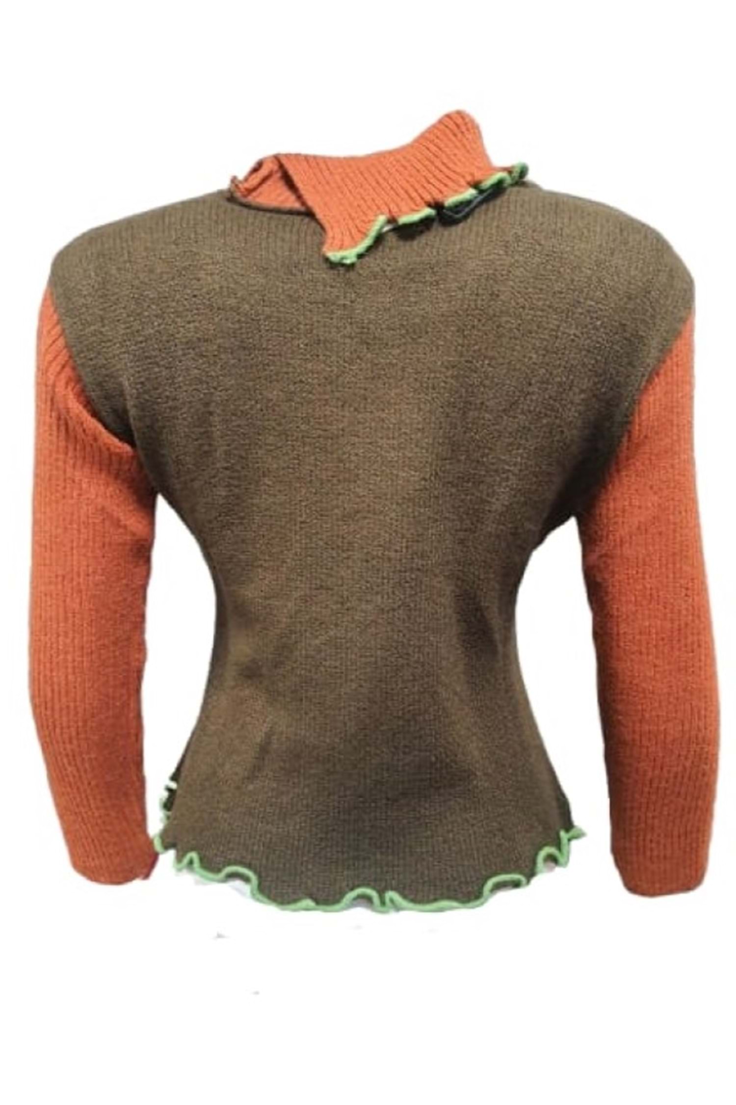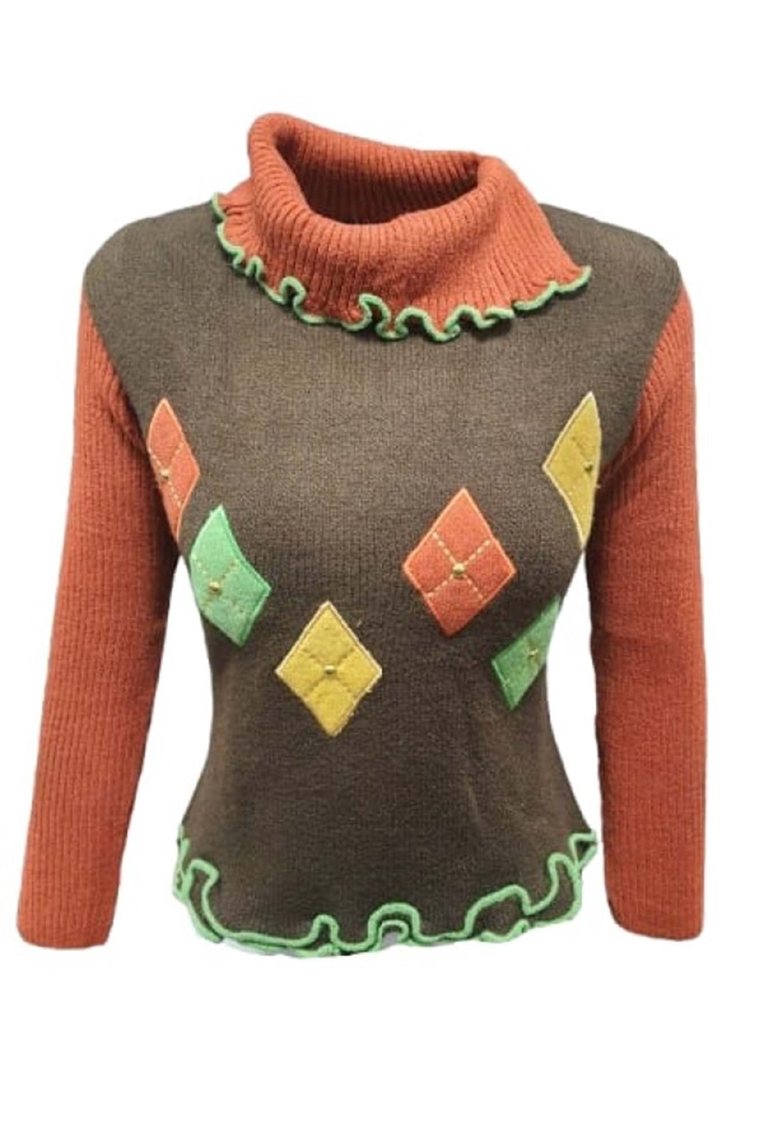 Sandora S02669 Kadın Desenli Akrilik Triko Boğazlı Kazak - Kahverengi - ST02669-Kahverengi-TEK EBAT